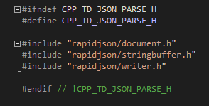 - 만약 당신의 프로젝트가 rapidjson 라이브러리를 수입하고 있지 않다면, 다음 헤더 파일을 수입하십시오: